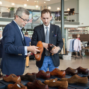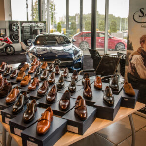 Oferta salonu, doświadczenie i życzliwość pracujących tam ludzi faktycznie robi wrażenie … no i połysk … lustrzany, taki jaki lubimy najbardziej … musicie przyznać, że nasze buty pasują tu idealnie. Oglądane i mierzone były zarówno buty, jak i spodnie, poszetki, krawaty, marynarki … oraz Mercedesy w połysku :)